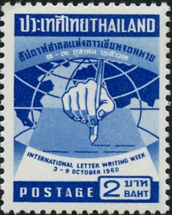 Visibility: public Image owner: none postage 10/3/1960 2b bl issue=Letter Writing Week 1960 d=hand with pen & globe wmk=zigzag lines (Thailand) perf=13.5 Crops No visible images cropped from this one. Measurements Resolution is unknown. Source Source name: Colnect File URL: http://i.colnect.net/b/5665/191/Hand-with-pen-and-globe.jpg Uploaded January 28, 2020, 5:00 am by Stan Shebs |