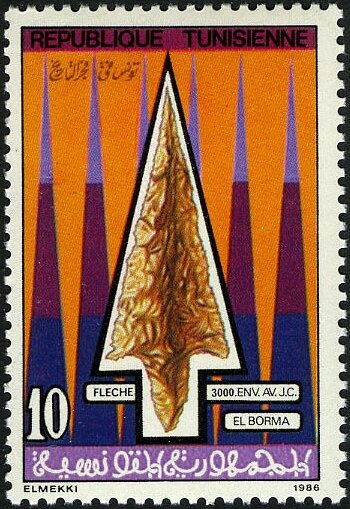 Visibility: public Image owner: none postage 10/30/1986 10m multi issue=Tunisian History unwmk perf=13.25 Crops No visible images cropped from this one. Measurements Resolution is unknown. Source Source name: Colnect File URL: http://i.colnect.net/b/5633/268/Arrow-head-El-Borma-3000-BC.jpg Uploaded January 29, 2020, 7:28 pm by Stan Shebs |