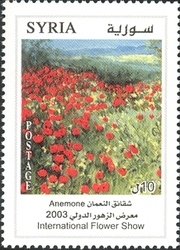 Visibility: public Image owner: none postage 6/15/2003 10lb multi issue=International Flower Show 2003 dt=flowers (2003 Syria) d=anemone (2003) unwmk Crops No visible images cropped from this one. Measurements Resolution is unknown. Source Source name: Colnect File URL: http://i.colnect.net/images/b/1428/681/Anemone.jpg Uploaded August 27, 2014, 7:44 pm by Stan Shebs |