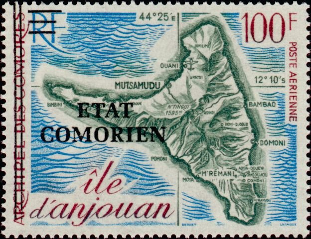 Visibility: public Image owner: none postage 100fr multi issue=1975 unwmk Crops No visible images cropped from this one. Measurements Resolution is unknown. Source Source name: Colnect File URL: http://i.colnect.net/images/b/547/801/Anjouan-island.jpg Uploaded August 29, 2014, 2:28 pm by Stan Shebs |