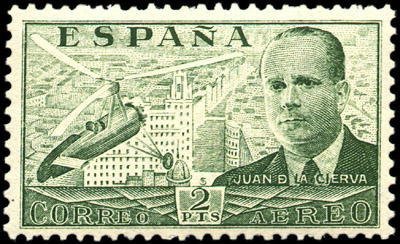 Visibility: public Image owner: none airmail 1/1939 2p grn issue=1939 air d=autogiro & Cierva unwmk perf=11 Crops No visible images cropped from this one. Measurements Resolution is unknown. Source Source name: Colnect File URL: http://i.colnect.net/b/1328/177/Juan-De-La-Cierva-1895-1936.jpg Uploaded August 29, 2014, 7:14 pm by Stan Shebs |