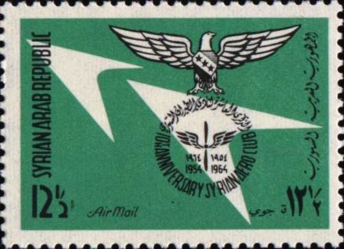 Visibility: public Image owner: none airmail 10/8/1964 12 1/2p grn&blk issue=10th Anniversary of Aero Club d=Arms of Syria Aero Club Emblem unwmk Crops No visible images cropped from this one. Measurements Resolution is unknown. Source Source name: Colnect File URL: http://i.colnect.net/b/1502/786/Arms-of-Syria---Aero-Club-Emblem.jpg Uploaded August 30, 2014, 2:45 pm by Stan Shebs |