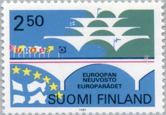 Visibility: public Image owner: none postage 9/4/1989 2.50mk multi issue=40 Year Comemmoration of Finnish Entry to the European Coun d=flags bridges unwmk perf=14 Crops No visible images cropped from this one. Measurements Resolution is unknown. Source Source name: Colnect File URL: http://i.colnect.net/images/b/160/033/Flags--amp--bridges.jpg Uploaded August 30, 2014, 5:11 pm by Stan Shebs |