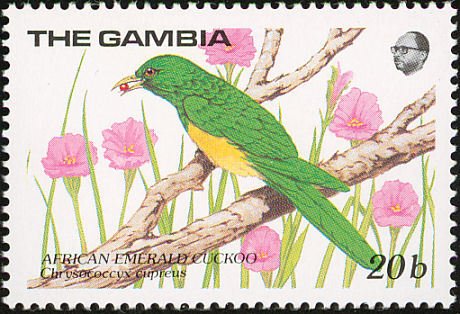 Visibility: public Image owner: none postage 4/24/1989 20b multi issue=Birds of West Africa dt=West African birds d=Chrysococcyx cupreus (1989) unwmk perf=14 Crops No visible images cropped from this one. Measurements Resolution is unknown. Source Source name: Colnect File URL: http://i.colnect.net/b/1462/488/African-Emerald-Cuckoo-nbsp-Chrysococcyx-cupreus.jpg Uploaded August 30, 2014, 6:00 pm by Stan Shebs |