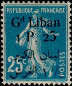 Visibility: public Image owner: none postage 7/1/1924 1.25p bl issue=1924d ovpt=Gd Liban//value//(arabic) oc=blk on=issuer=France-25c-bl Crops No visible images cropped from this one. Measurements Resolution is unknown. Source Source name: Colnect File URL: http://i.colnect.net/images/b/807/622/Type-Semeuse.jpg Uploaded August 31, 2014, 2:55 pm by Stan Shebs |