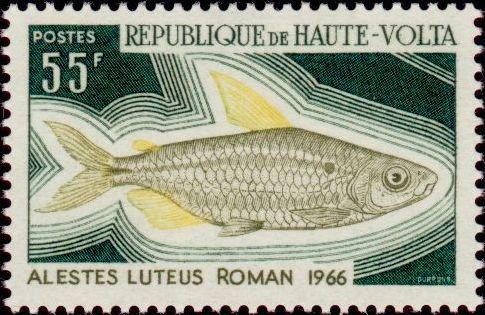 Visibility: public Image owner: none postage 7/17/1969 55fr multi issue=1969 dt=fishes (1969 Upper Volta) d=Alestes luteus unwmk Crops No visible images cropped from this one. Measurements Resolution is unknown. Source Source name: Colnect File URL: http://i.colnect.net/b/509/952/African-Characid-Alestes-luteus.jpg Uploaded September 1, 2014, 6:43 pm by Stan Shebs |