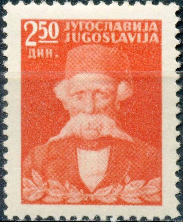 Visibility: public Image owner: none postage 9/27/1947 2.50d orgred issue=Serbian literature 100th d=Vuk Karadzic unwmk Crops No visible images cropped from this one. Measurements Resolution is unknown. Source Source name: Colnect File URL: http://i.colnect.net/b/1463/909/Vuk-Karadzic-1787-1864-writer-linguist---translator.jpg Uploaded September 1, 2014, 9:00 pm by Stan Shebs |