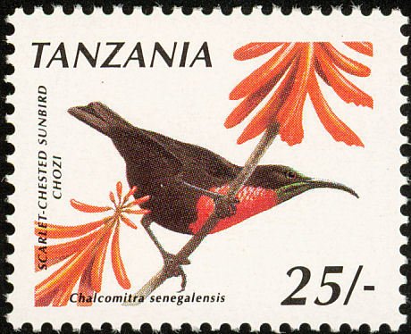 Visibility: public Image owner: none postage 12/15/1990 25sh multi issue=birds 1990 dt=birds (1990 Tanzania) d=Chalcomitra senegalensis unwmk perf=14 Crops No visible images cropped from this one. Measurements Resolution is unknown. Source Source name: Colnect File URL: http://i.colnect.net/b/1502/535/Scarlet-chested-Sunbird-Chalcomitra-senegalensis.jpg Uploaded September 2, 2014, 4:22 pm by Stan Shebs |