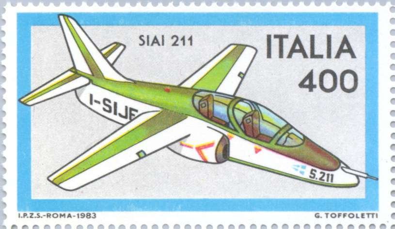 Visibility: public Image owner: none postage 3/28/1983 400(l) multi dt=Italian aircraft (1981) d=SIAI 211 wmk=stars Crops No visible images cropped from this one. Measurements Resolution is unknown. Source Source name: Colnect File URL: http://i.colnect.net/b/175/640/Italian-Aircraft--Siai.jpg Uploaded September 3, 2014, 6:16 pm by Stan Shebs |