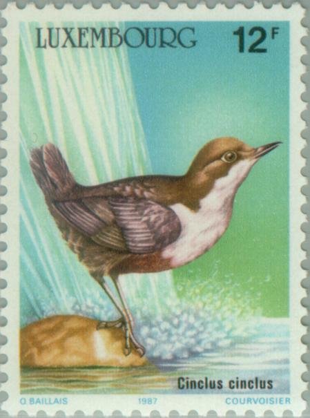 Visibility: public Image owner: none postage 3/9/1987 12fr multi issue=Wildlife Conservation 1987 d=Cinclus cinclus (1987 Luxembourg) unwmk Crops No visible images cropped from this one. Measurements Resolution is unknown. Source Source name: Colnect File URL: http://i.colnect.net/b/134/668/White-throated-Dipper-Cinclus-cinclus.jpg Uploaded September 3, 2014, 8:20 pm by Stan Shebs |