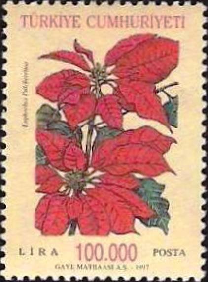 Visibility: public Image owner: none postage 9/8/1997 100000l multi dt=plants (1997 Turkey) d=Euphorbia pulcherrima (1997) unwmk perf=13x12.75 Crops No visible images cropped from this one. Measurements Resolution is unknown. Source Source name: Colnect File URL: http://i.colnect.net/b/775/012/Poinsettia-Euphorbia-pulcherima.jpg Uploaded September 4, 2014, 8:18 pm by Stan Shebs |