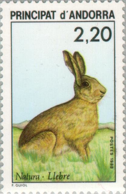 Visibility: public Image owner: none postage 7/2/1988 2.20fr multi issue=Nature protection 1988 unwmk perf=13 Crops No visible images cropped from this one. Measurements Resolution is unknown. Source Source name: Colnect File URL: http://i.colnect.net/b/142/082/European-Hare-Lepus-europaeus.jpg Uploaded September 4, 2014, 10:49 pm by Stan Shebs |
