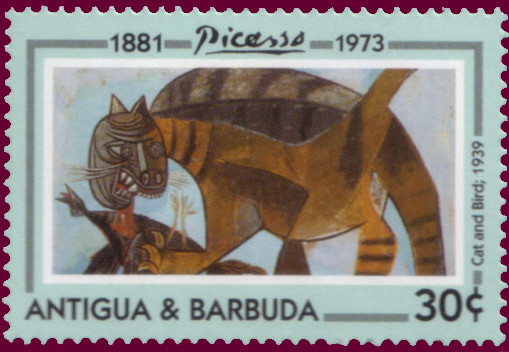 Visibility: public Image owner: none postage 8/16/1993 30c multi issue=20th Anniversary of the Death of Pablo Picasso d="Cat and Bird" - Picasso unwmk perf=14.25 Crops No visible images cropped from this one. Measurements Resolution is unknown. Source Source name: Colnect File URL: http://i.colnect.net/b/1462/727/Cat-and-Bird.jpg Uploaded September 5, 2014, 4:27 pm by Stan Shebs |