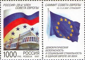 Visibility: public Image owner: none postage 10/1/1997 1000r multi issue=Admission of Russia to European Council unwmk perf=12x12.25 Crops No visible images cropped from this one. Measurements Resolution is unknown. Source Source name: Colnect File URL: http://i.colnect.net/b/190/815/Admission-of-Russia-to-European-Council.jpg Uploaded September 8, 2014, 4:11 pm by Stan Shebs |