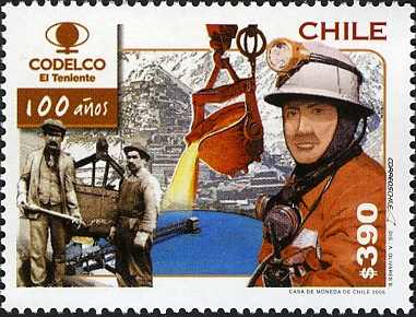 Visibility: public Image owner: none postage 8/3/2005 390p multi issue=Centenary of the El Temiente subsidiary of Codelco unwmk Crops No visible images cropped from this one. Measurements Resolution is unknown. Source Source name: WNS File URL: http://d2cdm2jef6kgc7.cloudfront.net/stamps/2005/CL/CL012.05.jpg Uploaded July 15, 2013, 5:27 am by Stan Shebs |