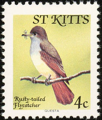 Visibility: public Image owner: none postage 5/30/1981 4c multi issue=1981 dt=birds (1981 St. Kitts) d=Lesser Antillean Flycatcher wmk=crown & CA spiral perf=14x14.25 Crops No visible images cropped from this one. Measurements Resolution is unknown. Source Source name: Colnect File URL: http://i.colnect.net/images/b/1659/304/Lesser-Antillean-Flycatcher.jpg Uploaded September 10, 2014, 1:01 pm by Stan Shebs |