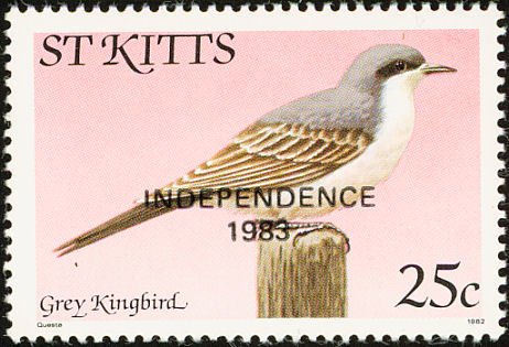 Visibility: public Image owner: none postage 9/19/1983 25c multi issue=independence dt=birds (1981 St. Kitts) d=Grey Kingbird on=issue=1981-25c wmk=crown & CA spiral Crops No visible images cropped from this one. Measurements Resolution is unknown. Source Source name: Colnect File URL: http://i.colnect.net/b/1659/351/Grey-Kingbird---overprinted.jpg Uploaded September 10, 2014, 1:02 pm by Stan Shebs |