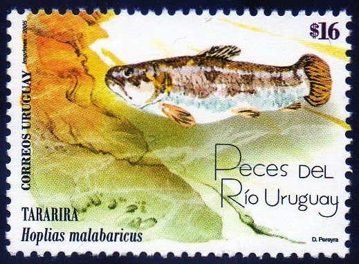 Visibility: public Image owner: none postage 11/22/2005 $16 multi dt=fishes of the Rio Uruguay d=Hoplias malabaricus unwmk Crops No visible images cropped from this one. Measurements Resolution is unknown. Source Source name: Colnect File URL: http://i.colnect.net/b/1273/254/Wolf-Fish-Hoplias-malabaricus.jpg Uploaded September 11, 2014, 5:32 pm by Stan Shebs |
