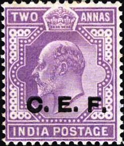 Visibility: public Image owner: none military 3/11/1911 2a vio issue=1911 military d=King Edward VII (1902 India 2a) on=issue=1902-2a wmk=star Crops No visible images cropped from this one. Measurements Resolution is unknown. Source Source name: Colnect File URL: http://i.colnect.net/b/1574/169/King-Edward-VII---Overprint--CEF-.jpg Uploaded September 11, 2014, 5:47 pm by Stan Shebs |