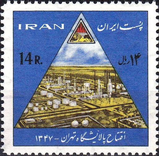 Visibility: public Image owner: none postage 5/21/1968 14r multi issue=Commissioning of an Oil Refinery near Tehran wmk=arms of Iran in circle perf=10.5 Crops No visible images cropped from this one. Measurements Resolution is unknown. Source Source name: Colnect File URL: http://i.colnect.net/images/b/1696/830/Oil-refinery-emblem-of-the-NIOC.jpg Uploaded September 11, 2014, 11:48 pm by Stan Shebs |