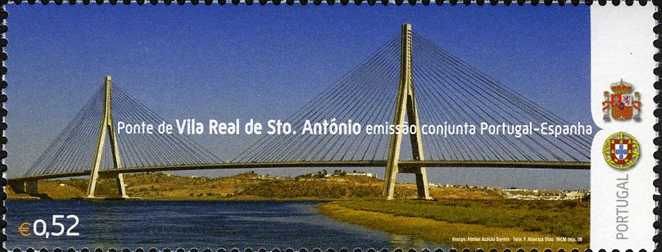 Visibility: public Image owner: none postage 9/14/2006 0,52€ multi issue=Portugal-Spain joint issue dt=Iberian Bridges d=Ponte de Vila Real de Santo António unwmk Crops No visible images cropped from this one. Measurements Resolution is unknown. Source Source name: Colnect File URL: http://i.colnect.net/b/575/153/Iberian-Bridges---Joint-Issue-with-Spain---Vila-Real--de-Sto.jpg Uploaded September 13, 2014, 3:30 pm by Stan Shebs |