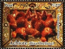 Visibility: public Image owner: none postage 8/6/2007 2.50s multi dt=medicinal plants (2007 Peru) d=Bixa orellana (2007) unwmk perf=13.5 Crops No visible images cropped from this one. Measurements Resolution is unknown. Source Source name: Colnect File URL: http://i.colnect.net/images/b/1584/975/Bixa-orellana.jpg Uploaded September 15, 2014, 5:15 pm by Stan Shebs |