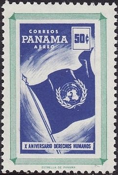 Visibility: public Image owner: none postage 4/14/1959 50c blgrn&bl issue=10th Anniversary of Declaration of Human Rights d=Airmail wmk=star & RP multiple Crops No visible images cropped from this one. Measurements Resolution is unknown. Source Source name: Colnect File URL: http://i.colnect.net/b/1730/862/Flag-of-the-UN.jpg Uploaded September 16, 2014, 5:31 pm by Stan Shebs |