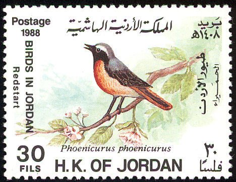 Visibility: public Image owner: none postage 7/21/1988 30f multi dt=birds (1998 Jordan) d=Phoenicurus phoenicurus (1988) wmk=HKJ Crops No visible images cropped from this one. Measurements Resolution is unknown. Source Source name: Colnect File URL: http://i.colnect.net/b/1646/648/Common-Redstart-Phoenicurus-phoenicurus.jpg Uploaded September 16, 2014, 7:05 pm by Stan Shebs |