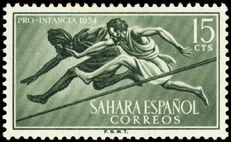 Visibility: public Image owner: none postage 6/1/1954 15c issue=Child Welfare 1954 dt=sports (1954 Spanish Sahara) d=hurdlers unwmk perf=12.5x13 Crops No visible images cropped from this one. Measurements Resolution is unknown. Source Source name: Colnect File URL: http://i.colnect.net/b/1633/638/Hurdles.jpg Uploaded September 16, 2014, 9:37 pm by Stan Shebs |
