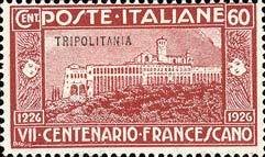 Visibility: public Image owner: none postage 4/12/1926 60c issue=St Francis of Assisi death 700th ovpt=TRIPOLITANIA oc=blk on=issuer=Italy-60c Crops No visible images cropped from this one. Measurements Resolution is unknown. Source Source name: Colnect File URL: http://i.colnect.net/b/1628/292/San-Francesco-overprinted.jpg Uploaded September 17, 2014, 12:21 am by Stan Shebs |