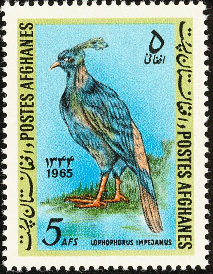 Visibility: public Image owner: none postage 4/26/1965 5af multi dt=birds (1965 Afghanistan) d=Lophophorus impejanus unwmk Crops No visible images cropped from this one. Measurements Resolution is unknown. Source Source name: Colnect File URL: http://i.colnect.net/b/1624/212/Himalayan-Monal-Lophophorus-impejanus-.jpg Uploaded September 17, 2014, 1:10 pm by Stan Shebs |