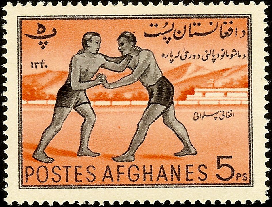 Visibility: public Image owner: none postage 6/1961 5p issue=Children's Day 1961 dt=sports (1961 Afghanistan) unwmk perf=12 Crops No visible images cropped from this one. Measurements Resolution is unknown. Source Source name: Colnect File URL: http://i.colnect.net/b/1736/714/Wrestlers.jpg Uploaded September 17, 2014, 1:12 pm by Stan Shebs |
