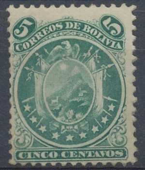 Visibility: public Image owner: none postage 5c grn d=arms of Bolivia (9 stars) unwmk Crops No visible images cropped from this one. Measurements Resolution is unknown. Source Source name: Colnect File URL: http://i.colnect.net/b/598/557/Coat-of-Arms-in-Circle-9-stars.jpg Uploaded August 16, 2014, 6:19 am by Stan Shebs |