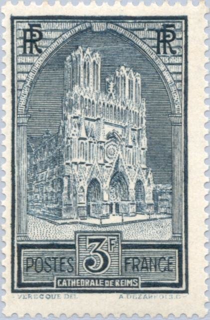 Visibility: public Image owner: none postage 11/17/1930 3fr dkbl issue=landmarks d=Reims Cathedral (1929) unwmk perf=13.25 Crops No visible images cropped from this one. Measurements Resolution is unknown. Source Source name: Colnect File URL: http://i.colnect.net/b/142/994/Reims--Cathedral-type-III.jpg Uploaded August 16, 2014, 7:37 pm by Stan Shebs |