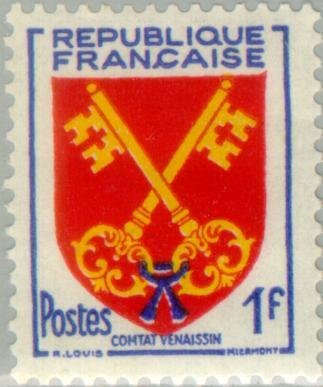 Visibility: public Image owner: none postage 11/19/1955 1fr multi dt=arms (1949) d=arms of Comtat Venaissin unwmk perf=14x13.5 Crops No visible images cropped from this one. Measurements Resolution is unknown. Source Source name: Colnect File URL: http://i.colnect.net/images/b/143/957/Comtat-Venaissin.jpg Uploaded August 16, 2014, 8:54 pm by Stan Shebs |