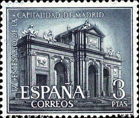 Visibility: public Image owner: none postage 11/13/1961 3p redbrn issue=Madrid as capital 400th d=Alcalá Gate unwmk perf=14 Crops No visible images cropped from this one. Measurements Resolution is unknown. Source Source name: Colnect File URL: http://i.colnect.net/b/602/920/400th-Anniversary-of-Madrid-as-Capital.jpg Uploaded September 10, 2012, 11:57 pm by Stan Shebs |