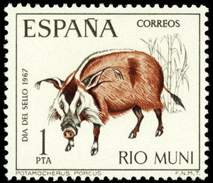 Visibility: public Image owner: none postage 11/23/1967 1p issue=stamp day 1967 d=river hog Crops No visible images cropped from this one. Measurements Resolution is unknown. Source Source name: Colnect (old) File URL: http://i.colnect.net/images/f/303/850/River-hog.jpg Page URL: http://colnect.com/en/stamps/stamp/112540-River_hog-Stamp_Day-Rio_Muni Gallery URL: http://colnect.com/en/stamps/list/country/4248-Rio_Muni/year/1967/page/1 Uploaded September 13, 2012, 5:47 am by Stan Shebs |