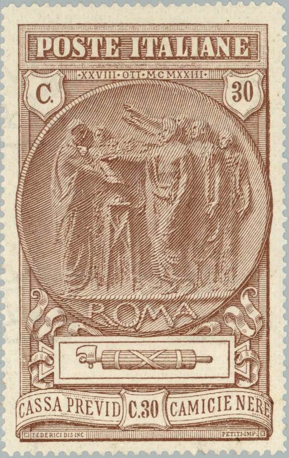 Visibility: public Image owner: none semipostal 10/29/1923 30+30c brn issue=Pro pension fund of the Blackshirts d=administering oath perf=14 Crops No visible images cropped from this one. Measurements Resolution is unknown. Source Source name: Colnect File URL: http://i.colnect.net/b/166/492/Roman-Oath.jpg Uploaded August 18, 2014, 3:29 pm by Stan Shebs |