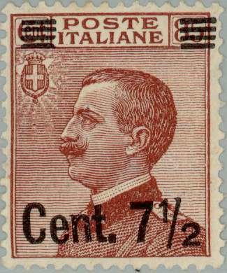 Visibility: public Image owner: none postage 1/1/1924 7 1/2c redbrn issue=provisional d=Victor Emmanuel III (facing left) oc=blk on=1920-85c wmk=crown (Italy) perf=14 Crops No visible images cropped from this one. Measurements Resolution is unknown. Source Source name: Colnect File URL: http://i.colnect.net/b/166/475/Michetti-overprinted.jpg Uploaded August 18, 2014, 3:29 pm by Stan Shebs |