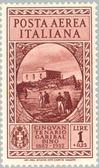 Visibility: public Image owner: none airmail 4/6/1932 1l+0.25c redbrn issue=Garibaldi death 50th wmk=crown (Italy) perf=14 Crops No visible images cropped from this one. Measurements Resolution is unknown. Source Source name: Colnect File URL: http://i.colnect.net/b/167/318/House-Garibaldi-in-Caprera.jpg Uploaded August 18, 2014, 3:36 pm by Stan Shebs |