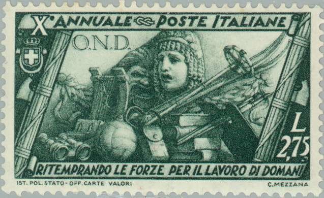 Visibility: public Image owner: none postage 10/27/1932 2.75l grn issue=Fascist government 10th d=National Opera after work wmk=crown (Italy) perf=14 Crops No visible images cropped from this one. Measurements Resolution is unknown. Source Source name: Colnect File URL: http://i.colnect.net/b/167/338/National-Opera-after-work.jpg Uploaded August 18, 2014, 3:36 pm by Stan Shebs |