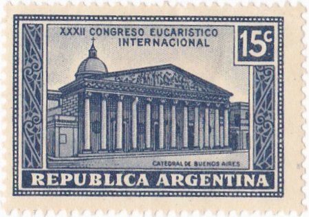 Visibility: public Image owner: none postage 10/1/1934 15c dkbl issue=32nd International Eucharistic Congress d=Buenos Aires Cathedral wmk=RA in sun perf=13.5x13 Crops No visible images cropped from this one. Measurements Resolution is unknown. Source Source name: Colnect File URL: http://i.colnect.net/b/783/503/32th-Int-Eucharistic-Congress-Buenos-Aires-Cathedral.jpg Uploaded August 18, 2014, 4:14 pm by Stan Shebs |