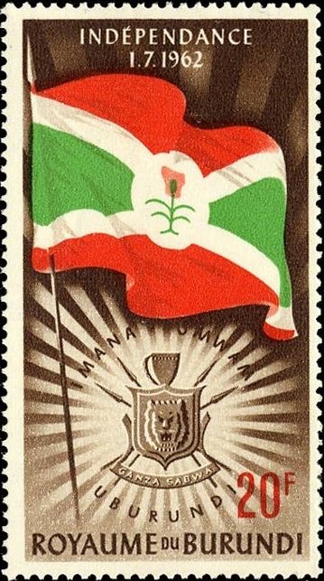 Visibility: public Image owner: none postage 9/27/1962 20fr issue=independence d=flag & arms of Burundi unwmk Crops No visible images cropped from this one. Measurements Resolution is unknown. Source Source name: Colnect File URL: http://i.colnect.net/b/1040/836/Flag-and-Emblem-from-Burundi.jpg Uploaded August 18, 2014, 7:55 pm by Stan Shebs |