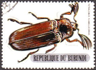 Visibility: public Image owner: none postage 1/20/1970 1fr multi issue=beetles 1970 dt=beetles (1970) d=Tetralobus flabellicornis unwmk Crops No visible images cropped from this one. Measurements Resolution is unknown. Source Source name: Colnect File URL: http://i.colnect.net/b/958/650/Giant-Acacia-Click-Beetle-Tetralobus-flabellicornis.jpg Uploaded August 18, 2014, 8:01 pm by Stan Shebs |