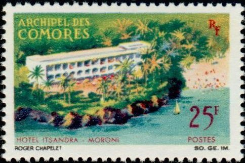 Visibility: public Image owner: none postage 12/19/1966 25fr multi dt=tourism (1966 Comoro Islands) d=Hotel Itsandra unwmk perf=13 Crops No visible images cropped from this one. Measurements Resolution is unknown. Source Source name: Colnect File URL: http://i.colnect.net/b/787/723/Moroni-Hotel-Itsandra.jpg Uploaded August 18, 2014, 10:38 pm by Stan Shebs |
