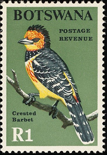 Visibility: public Image owner: none postage 1/3/1967 1r multi dt=birds (1967 Botswana) d=Crested Barbet unwmk perf=14.25x14.75 Crops No visible images cropped from this one. Measurements Resolution is unknown. Source Source name: Colnect File URL: http://i.colnect.net/b/597/717/Crested-Barbet-Trachyphonus-vaillantii-.jpg Uploaded August 18, 2014, 11:26 pm by Stan Shebs |