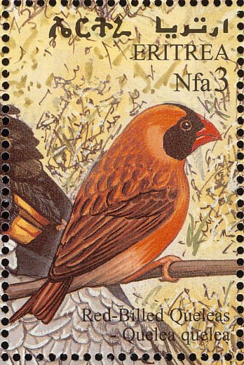 Visibility: public Image owner: none postage 3/16/1998 3n multi issue=Birds 1998 dt=birds (1998 Eritrea) d=Quelea quelea (1998) Crops No visible images cropped from this one. Measurements Resolution is unknown. Source Source name: Colnect File URL: http://i.colnect.net/b/1744/757/Red-billed-Quelea Quelea-quelea.jpg Uploaded December 12, 2013, 6:52 pm by Stan Shebs |