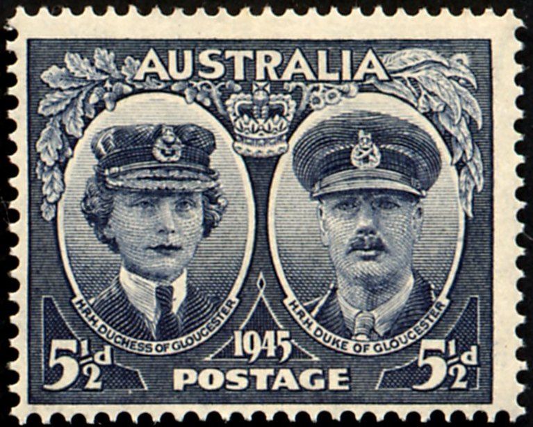 Visibility: public Image owner: none postage 2/19/1945 blblk d=Duchess of Gloucester & Duke of Gloucester wmk=mult small crown & CofA perf=14.5 Crops No visible images cropped from this one. Measurements Resolution is unknown. Source Source name: Wikimedia Commons File URL: http://upload.wikimedia.org/wikipedia/commons/b/b5/Australianstamp_1508.jpg Uploaded February 28, 2011, 4:12 am by Stan Shebs |