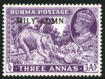 Visibility: public Image owner: none postage 3a pur issue=1945 d=elephant (1938) ovpt=MILY ADMIN oc=blk on=1938-3a wmk=elephant heads Crops No visible images cropped from this one. Measurements Resolution is unknown. Source Source name: Colnect File URL: http://i.colnect.net/b/1230/594/Asian-Elephant-Elephas-maximus-with-Mahout---Burma-Teak.jpg Uploaded August 21, 2014, 6:42 pm by Stan Shebs |