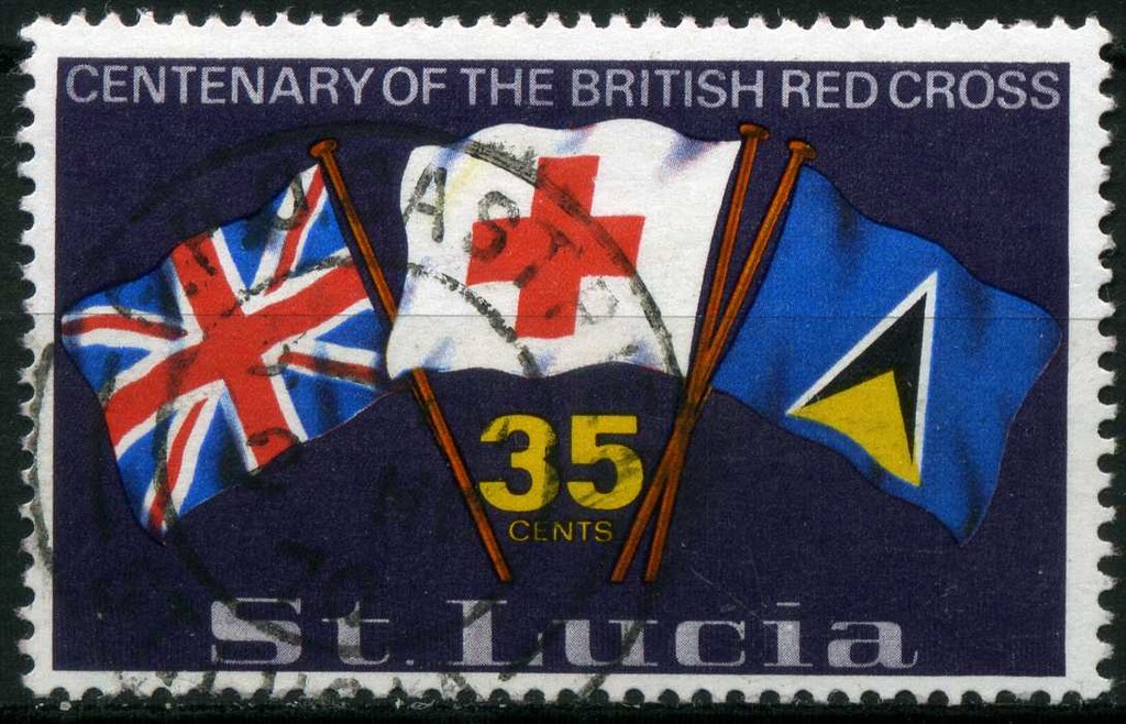 Visibility: public Image owner: none postage 6/8/1970 35c multi issue=British Red Cross 100th d=Flags of Great Britain & St Lucia - Red Cross wmk=mult crown & script CA perf=14.5 Crops No visible images cropped from this one. Measurements Resolution is unknown. Source Source name: Colnect File URL: http://i.colnect.net/b/1698/165/Flags-of-Great-Britain-and-St-Lucia---Red-Cross.jpg Uploaded December 27, 2013, 3:30 am by Stan Shebs |